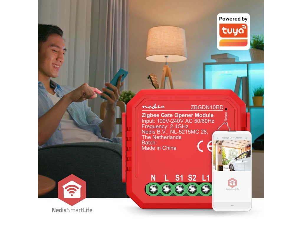 Vylepšete Vaši chytrou domácnost kombinací inteligentního spínače garážových vrat s dalšími produkty Nedis SmartLife a vytvořte si přizpůsobitelné scény a automatizace prostřednictvím naší Nedis® Zigbee brány (WIFIZBxxx).