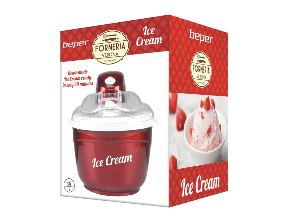 Máte chuť na zmrzlinu a to doslova hned teď ? Automatický výrobník zmrzliny od značky Beper v originálním retro designu, který ozvláštní Vaši kuchyň, je určen pro přípravu domácí zmrzliny za pouhých 30 minut. Připravte si mražený jogurt, zmrzlinu, sorbet bez chemikálií, bez použití alkoholů a solí.