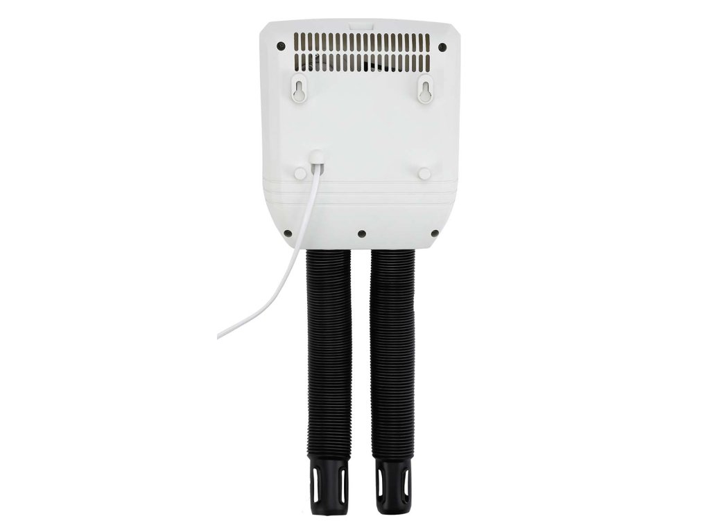 Vysoušeč obuvi s příkonem 250 W dokáže najednou vysušit jeden pár bot nebo holínek. Použití je velmi snadné: díky nastavitelnému držáku na stěnu můžete přístroj zavěsit, kamkoli budete chtít. Flexibilní hadice jsou vhodné pro boty i holínky. Vložte hadici do každé boty nebo holínky, nastavte časovač na požadovaný čas a sušička obuvi se postará o zbytek. Zařízení se po uplynutí nastavené doby automaticky vypne. Zabudovaná ochrana termostatu navíc poskytuje ochranu proti přehřátí.