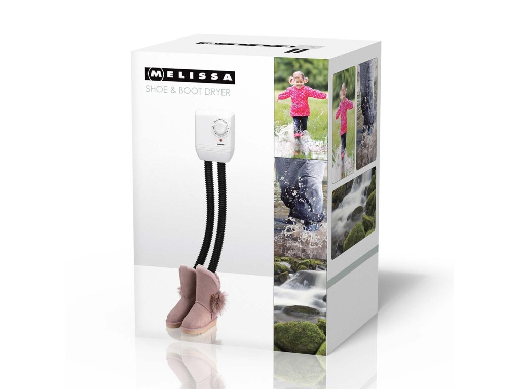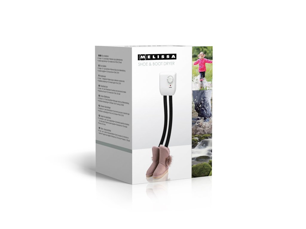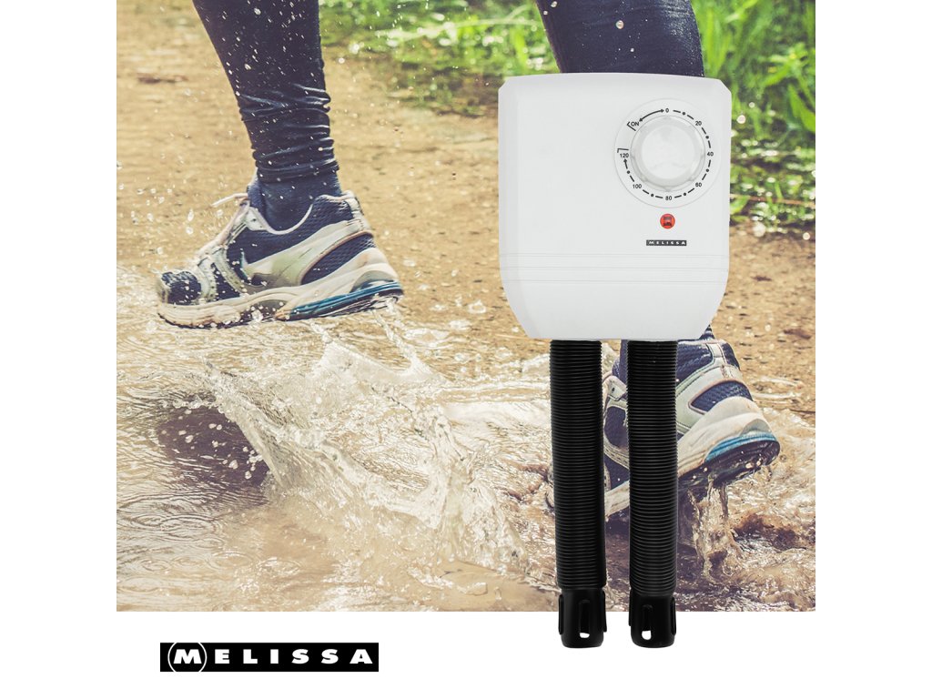 S tímto vysoušečem obuvi Melissa 16540009 můžete rychle a účinně vysušit mokré boty a holínky zevnitř. Jedná se o ideální řešení pro rodiny s dětmi a pro všechny, kteří se aktivně pohybují venku, bez ohledu na počasí. Přirozený proces sušení mokré obuvi může trvat dlouho a vést k nepříjemnému zápachu a tvorbě bakterií. Tyto problémy jsou však díky našemu vysoušeči obuvi minulostí. Přístroj rychle odstraňuje vlhkost a zajišťuje, že vaše boty jsou během okamžiku opět připraveny k použití.
