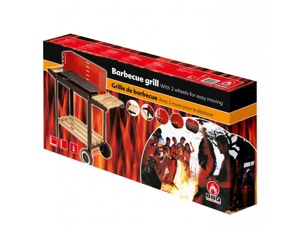Pojízdný gril na dřevěné uhlí s odkládací plochou. Díky mobilnímu charakteru grilu (čtyři pevné nohy, z nichž dvě jsou zakončeny koly) můžete grilování přesunout kamkoliv. Gril disponuje dvěma odkládacími prostory.