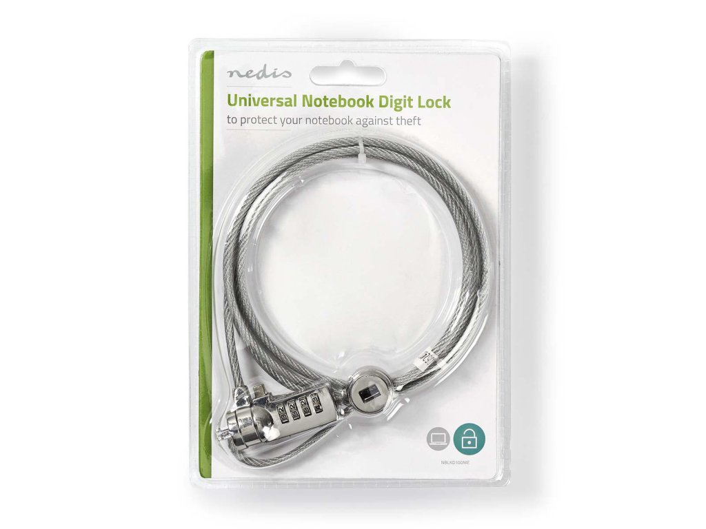 Univerzální zámek Nedis® vhodný např. pro notebook, kompatibilní se systémem Kensington lock. Uzamykání pomocí číselného kódu s 10 000 nastavitelnými kombinacemi.