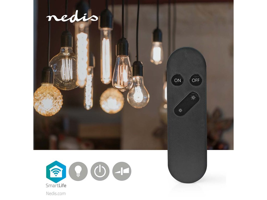 Nedis® SmartLife™ dálkový ovladač představuje další možnost, jak kromě hlasového ovládání můžete pracovat s našimi žárovkami Nedis® SmartLife rychle a zároveň jednoduše. Žárovky lze jednoduše zapínat a vypínat nebo jednoduchým stiskem měnit jas. Díky dosahu signálu až 20 metrů můžete chytré žárovky ovládat ze všech koutů domu.