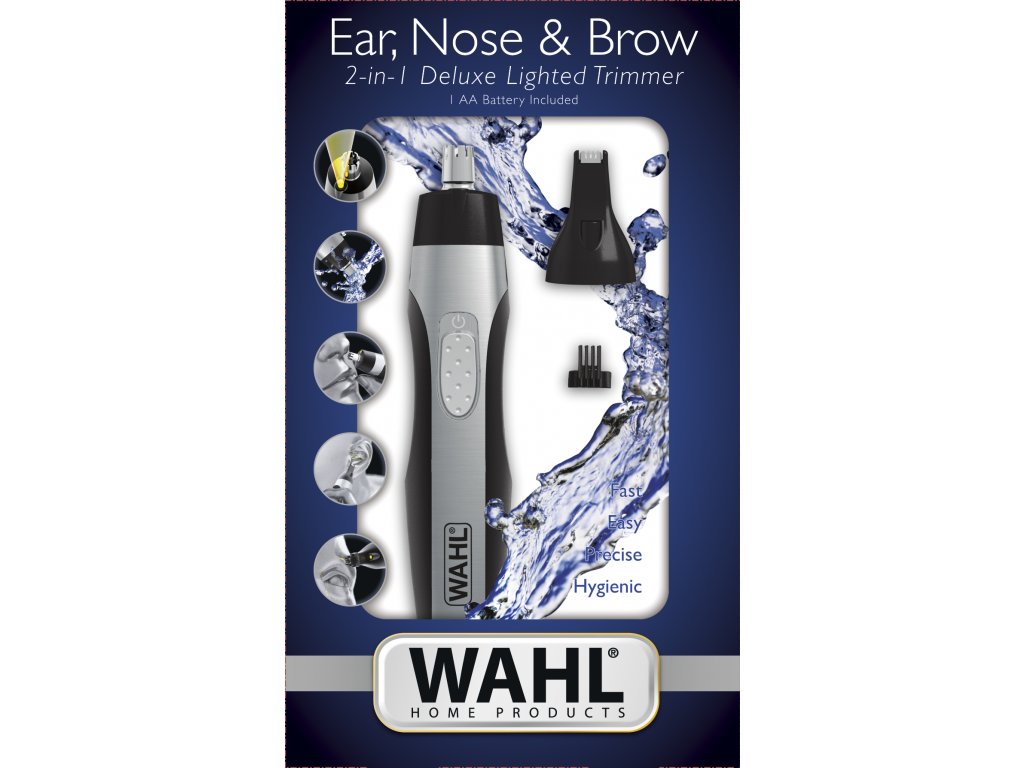 Dvouhlavý osobní zastřihovač WAHL EAR, NOSE & EYEBROW / 2 in1 s rotační hlavou v bezdrátovém provedení, napájený na 1x AA baterií. Zastřihovač je možné oplachovat pod tekoucí vodou. Pracuje rychle, bezpečně a hygienicky.