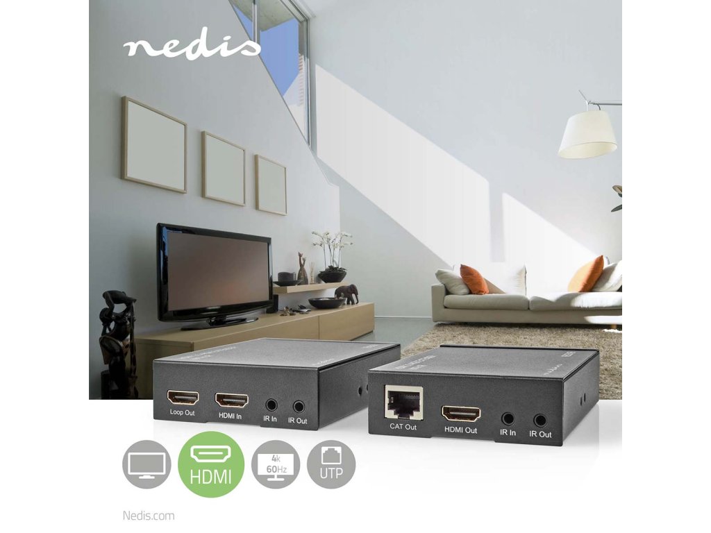 Nedis VREP3480AT extender HDMI po UTP CAT6, 4K@60Hz, 18 Gbps, IR return, do 60 m